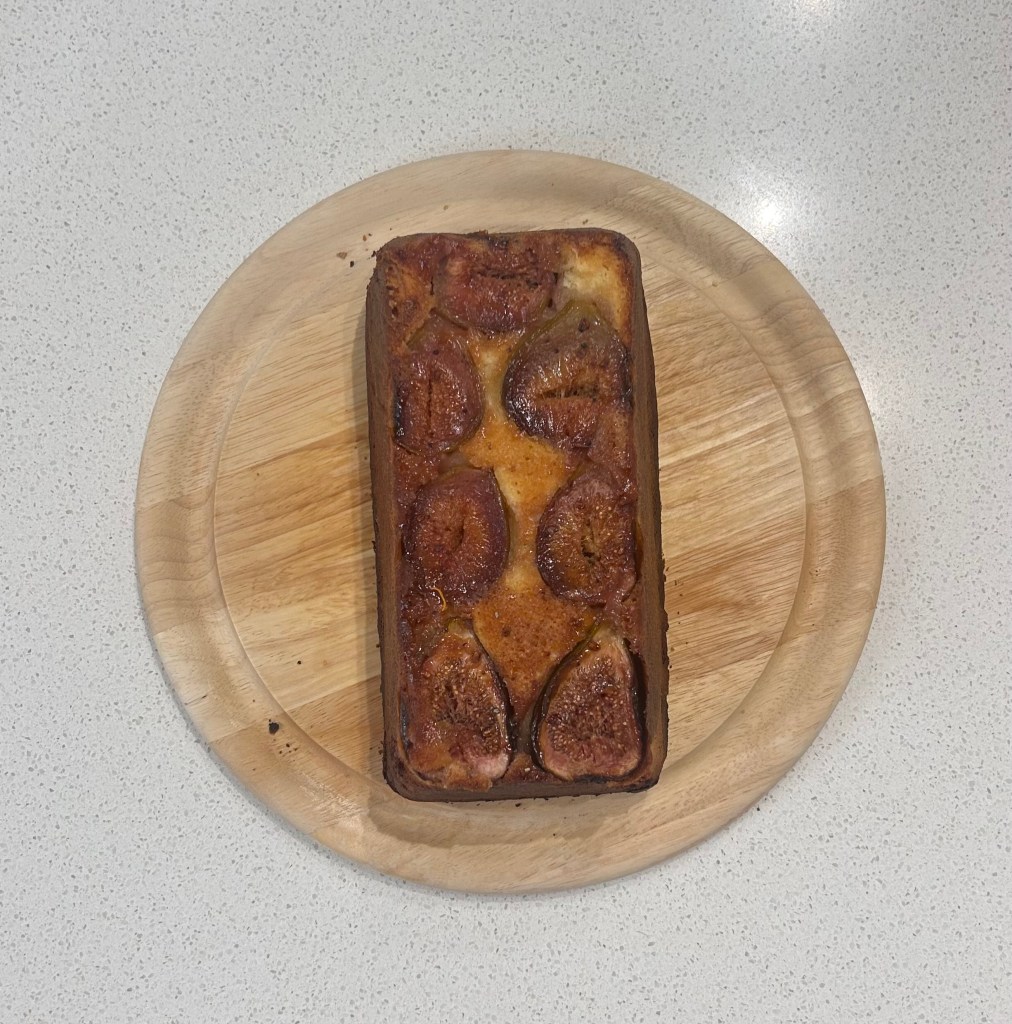 - In a small bowl, mix the Demerara and cardamom. Grease and line a loaf tin, then sprinkle 1/2 of the sugar mixture over the base. Arrange the figs in the tin, cut side down. Preheat the oven to 180°C